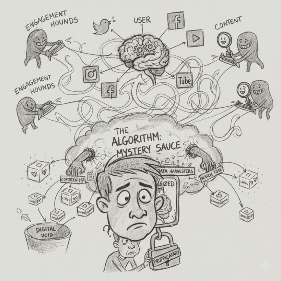 Pada dasarnya, algoritma adalah mesin antisipasi. Mereka berusaha memodelkan kognisi, emosi, dan impuls manusia melalui proksi data. Pertanyaannya bukan “Apakah konten ini bagus?”