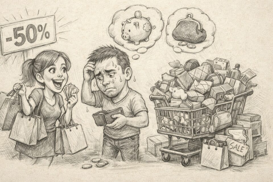 Seseorang bisa datang ke toko hanya untuk “lihat-lihat”. Aktivitas yang terdengar tidak berbahaya. Namun begitu melihat tulisan SALE, niat santai itu berubah menjadi misi belanja. Beberapa menit kemudian, orang yang sama keluar membawa kantong yang bahkan tidak direncanakan sebelumnya.